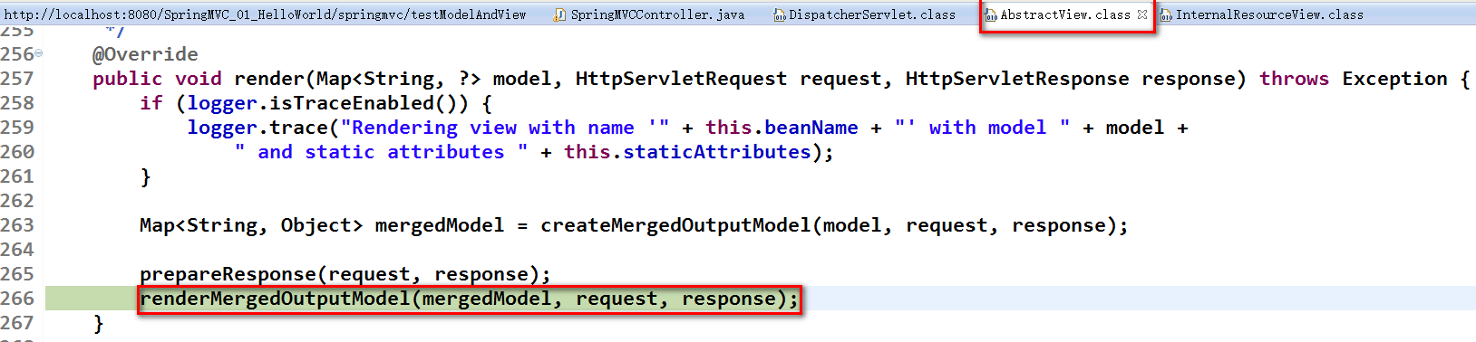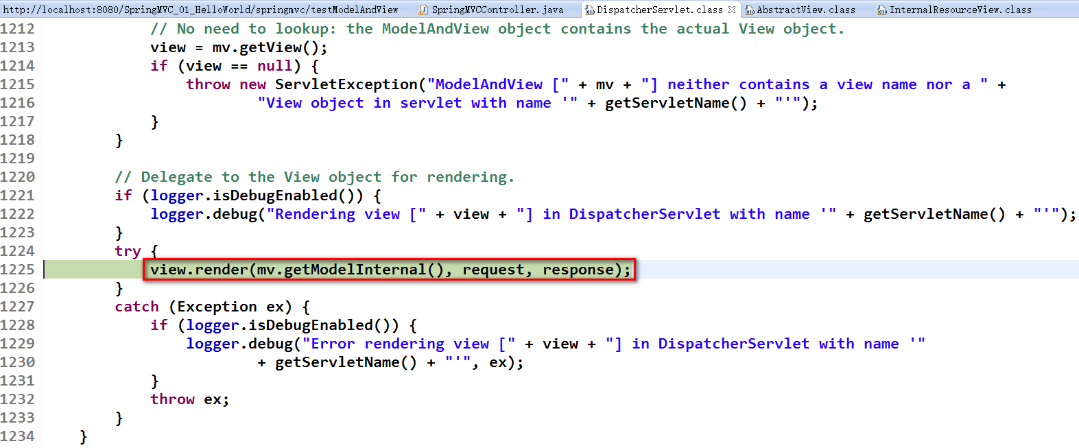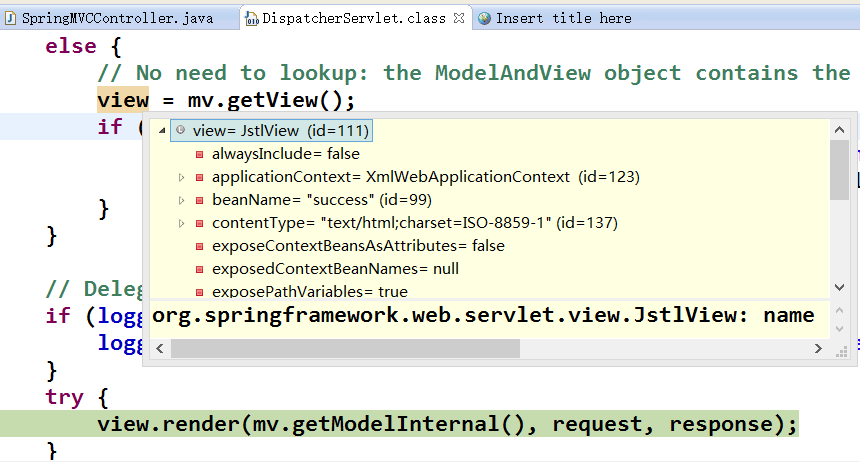 根据返回的ModelAndView(此时会判断是否存在异常:如果存在异常,则执行HandlerExceptionResolver进行异常处理)选择一个适合的ViewResolver(必须是已经注册到Spring容器中的ViewResolver)返回给DispatcherServlet,根据Model和View,来渲染视图
