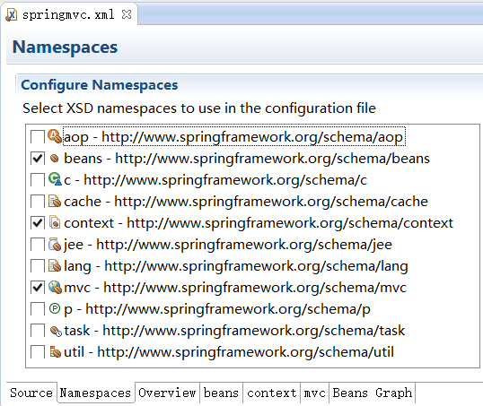 Spring MVC的配置文件:springmvc.xml增加名称空间