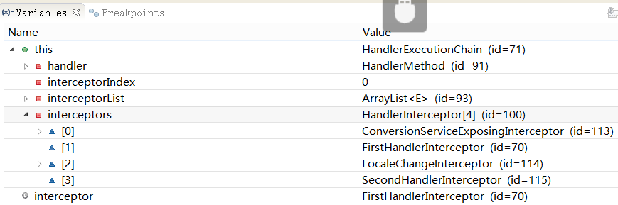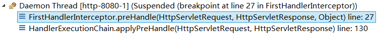 如果成功获得HandlerAdapter后,此时将开始执行拦截器的preHandler(...)方法【正向】