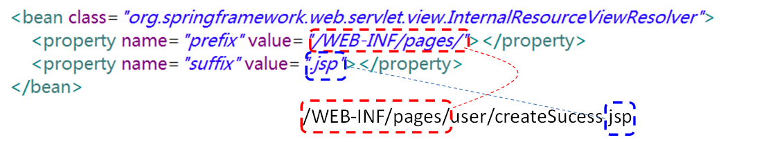 <!-- 设置扫描组件的包: --> <context:component-scan base-package="com.atguigu.springmvc"/> <!-- 配置映射解析器:如何将控制器返回的结果字符串,转换为一个物理的视图文件--> <bean id="internalResourceViewResolver" class="org.springframework.web.servlet.view.InternalResourceViewResolver"> <property name="prefix" value="/WEB-INF/views/"/> <property name="suffix" value=".jsp"/> </bean>1