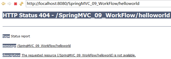 四月 20, 2016 11:53:19 上午 org.springframework.web.servlet.PageNotFound noHandlerFound 警告: No mapping found for HTTP request with URI [/SpringMVC_09_WorkFlow/helloworld2] in DispatcherServlet with name 'springDispatcherServlet'1