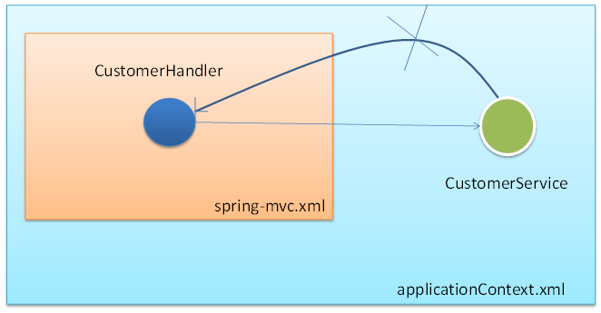 返回来呢 ? 反之则不行. Spring IOC 容器中的 bean 却不能来引用 SpringMVC IOC 容器中的 bean
