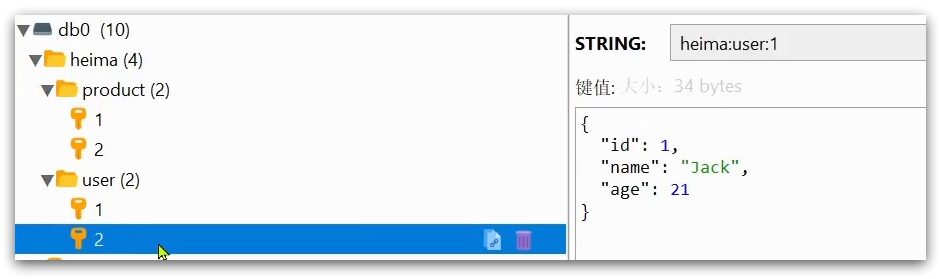 这里采用了JSON序列化来代替默认的JDK序列化方式。最终结果如图: