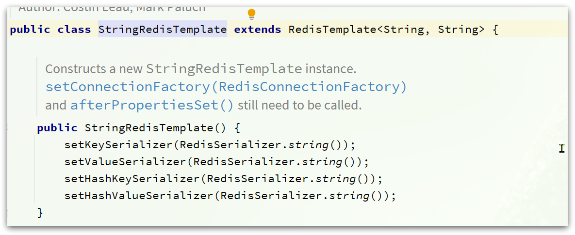 这种用法比较普遍,因此SpringDataRedis就提供了RedisTemplate的子类:StringRedisTemplate,它的key和value的序列化方式默认就是String方式。